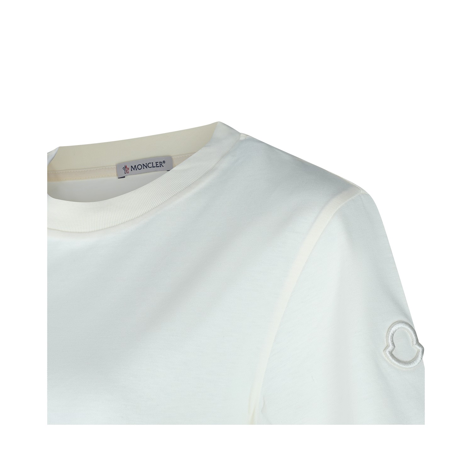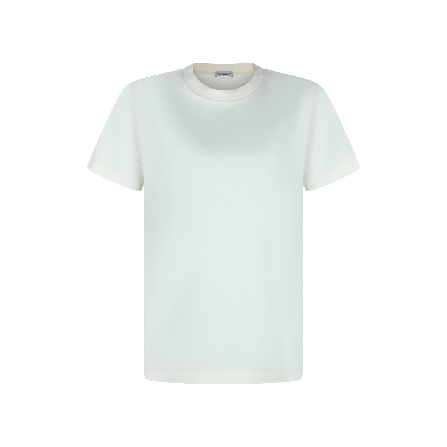 White cotton T-shirt from Moncler featuring short sleeves, round neck, straight hem and regular fit.